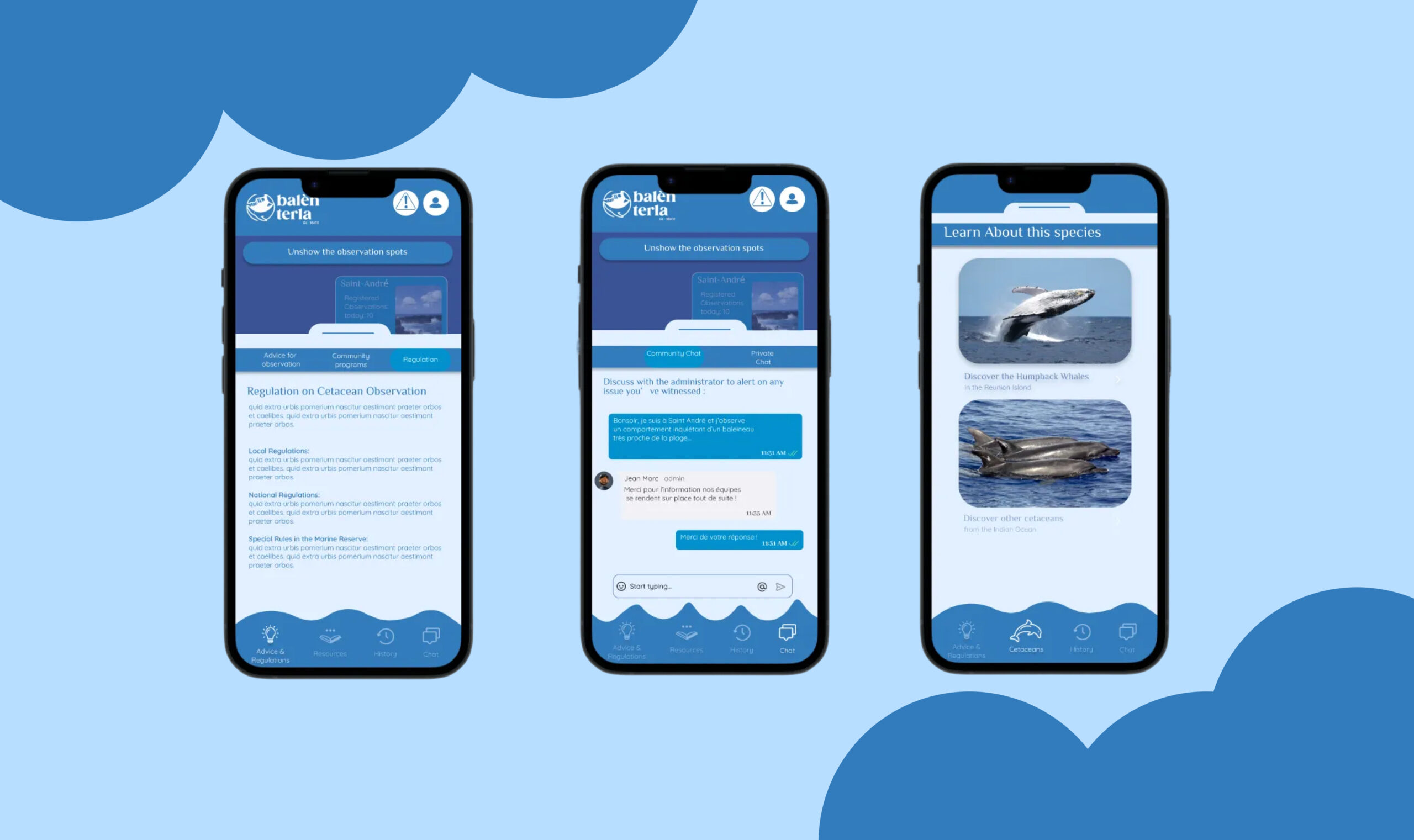 Traditional whale watching depends on scattered manual reports, limiting real-time data for researchers. Balèn Terla integrates precise geolocation and coastal mapping to direct users to the best land-based viewpoints around Réunion Island. This solves key challenges by providing structured observation guidance while enabling instant logging of whale behavior, group size, and environmental conditions.